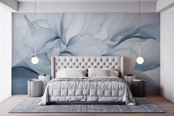 Valokuvatapetti Virtaava abstrakti kukka terälehdet läpikuultava ja kerroksellinen muotoja pastellivärit, sinisen sävyjä w08701v2