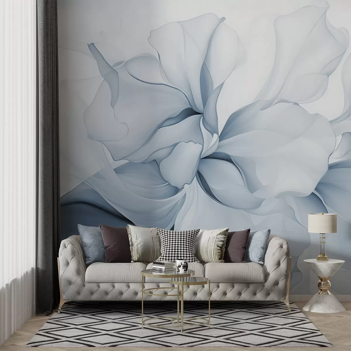 Valokuvatapetti Virtaava abstrakti kukka terälehdet läpikuultava ja kerroksellinen muotoja pastellivärit, sinisen sävyjä Nr w08701v2