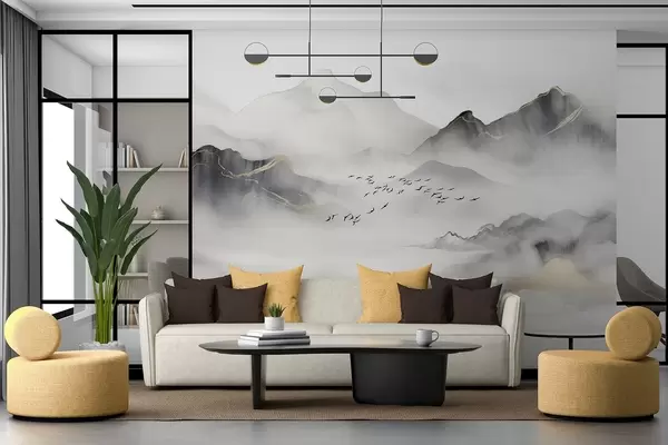 Valokuvatapetti Herkät vuoret sumussa vesivärityyliin Nr w08719