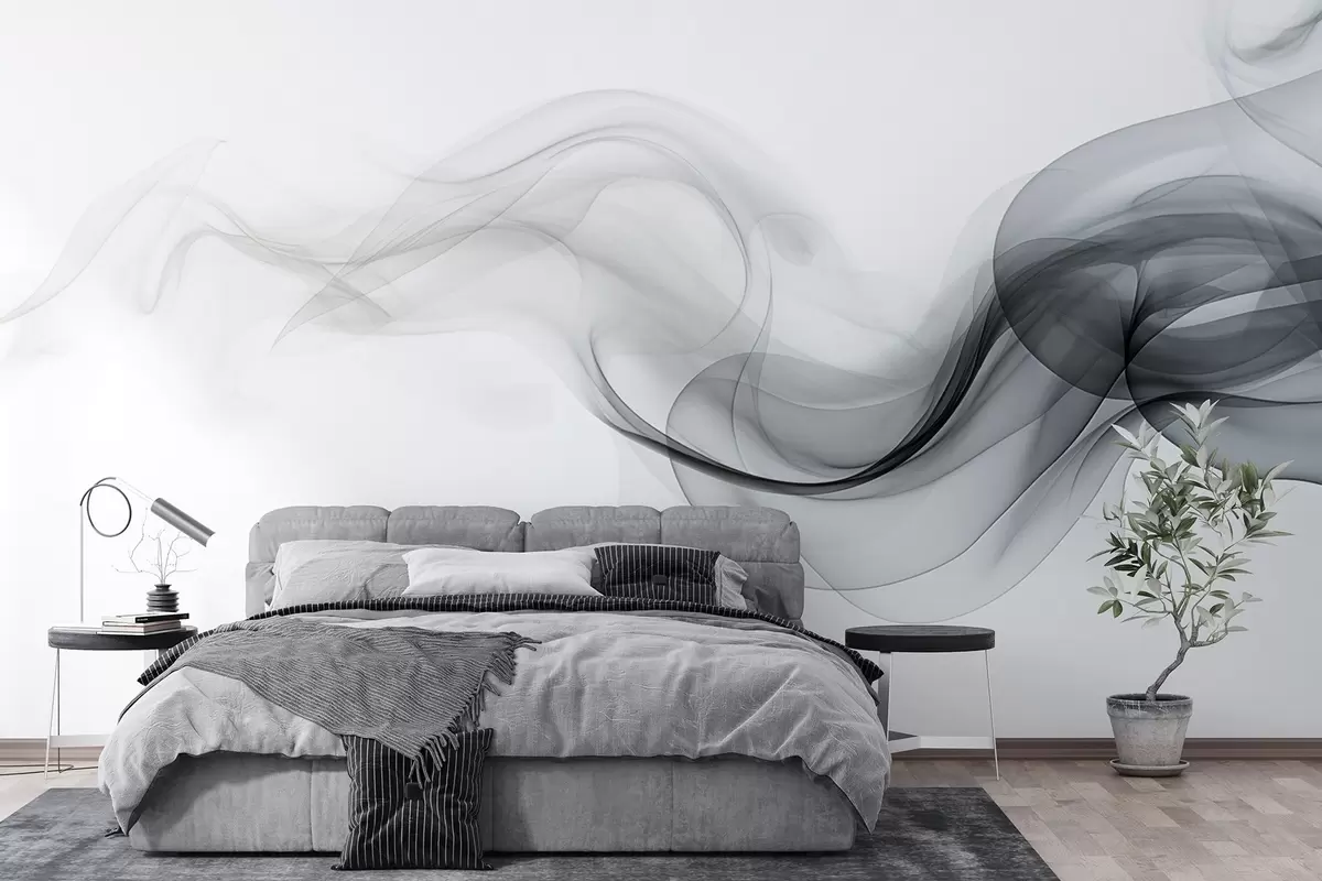 Valokuvatapetti Musta läpikuultava savu, abstrakti kuvio valkoisella pohjalla Nr w08813