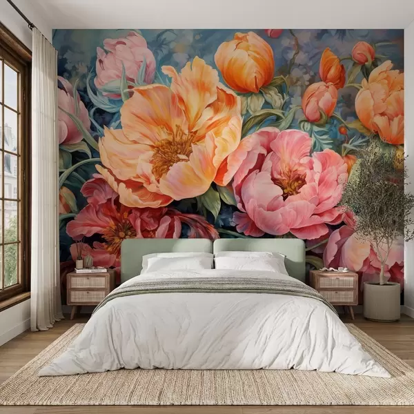 Valokuvatapetti Tulppaanit ja pionit, kukka sommitelma öljyn siveltimenveto tyyliin Nr w08817