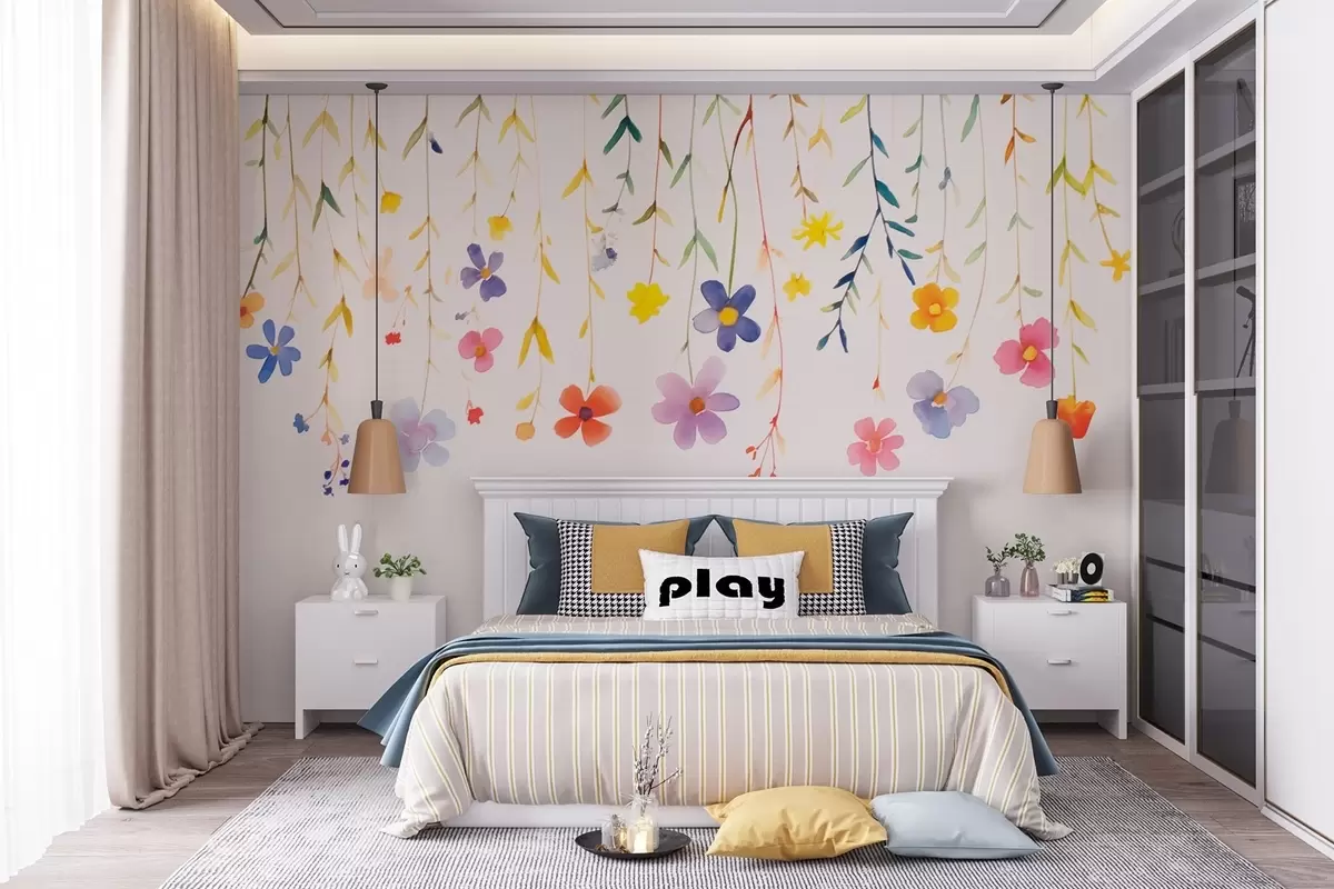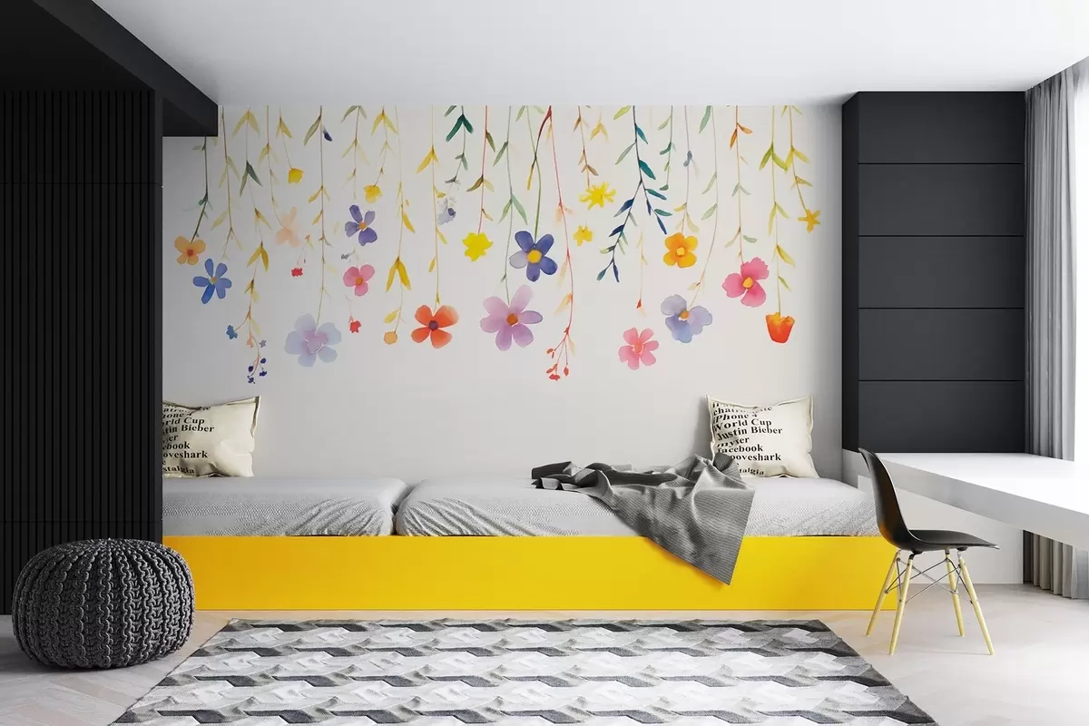 Valokuvatapetti Luonnonkukkia vesivärityyliin, yksinkertaisia ja värikkäitä Nr w08851