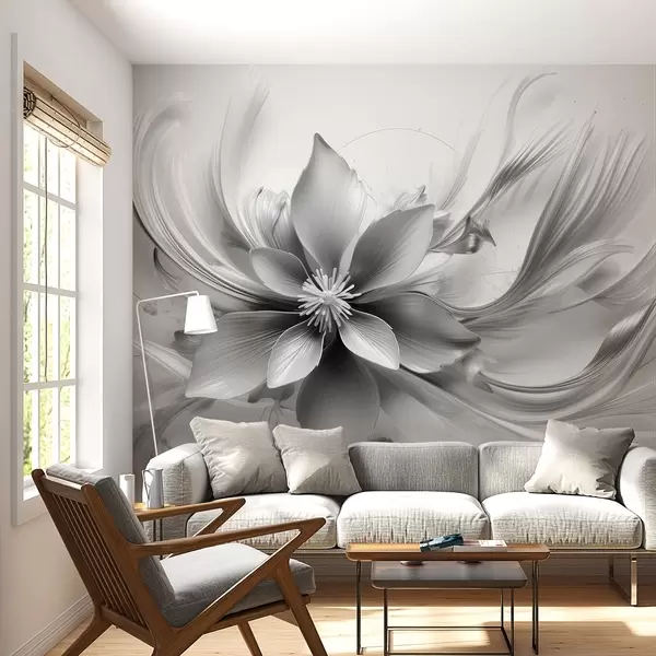 Valokuvatapetti Suuri abstrakti kukka mustavalkoiseen tyyliin w08903v2