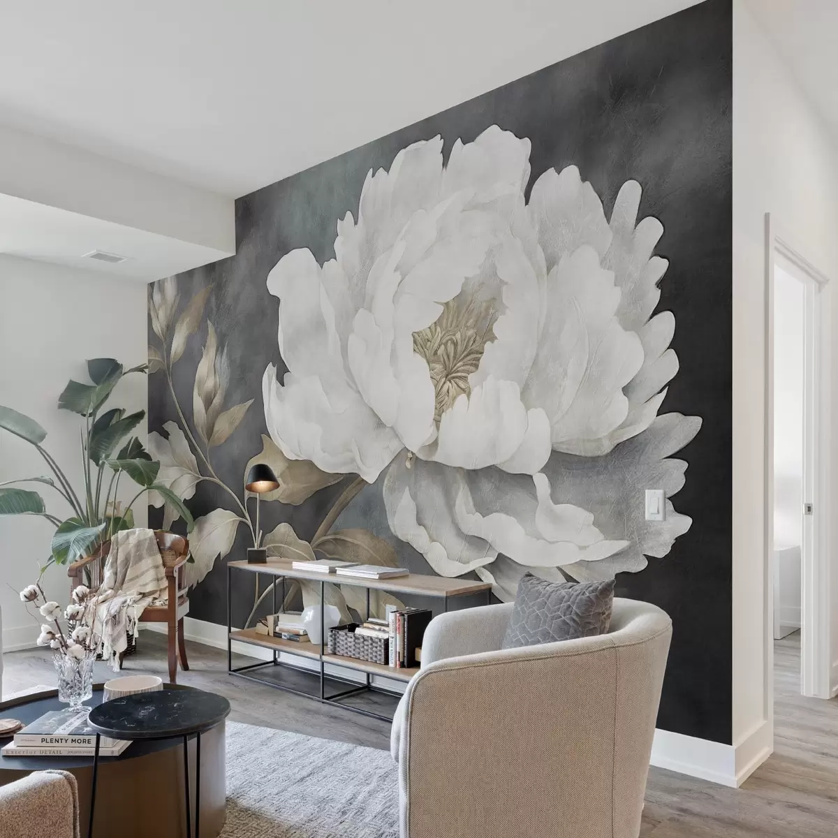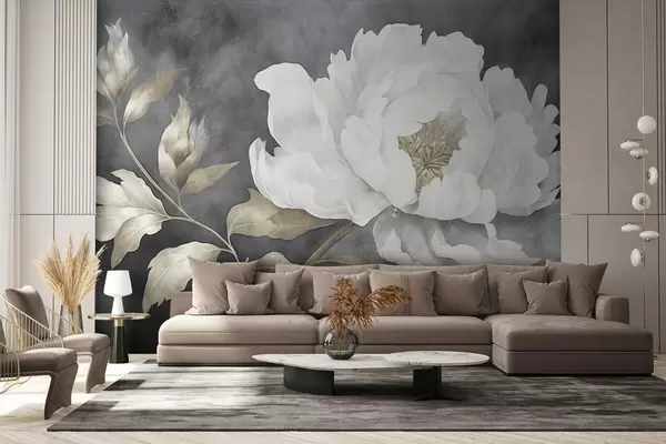 Valokuvatapetti Suuri vaalea kukka tummalla ikääntyneellä taustalla Nr w08949