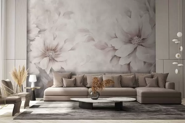 Valokuvatapetti Herkät läpikuultavat kukat ikääntyneellä taustalla Nr w08950