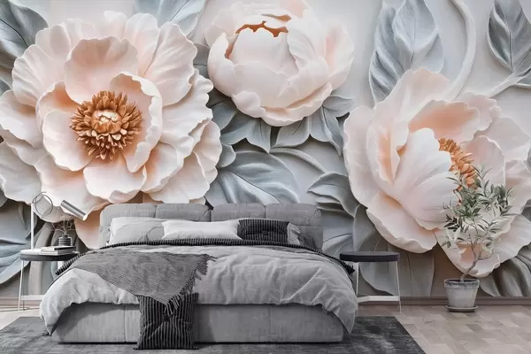 Valokuvatapetti Upeat suuret pionit lehtien kanssa freskotyyliin Nr w08954