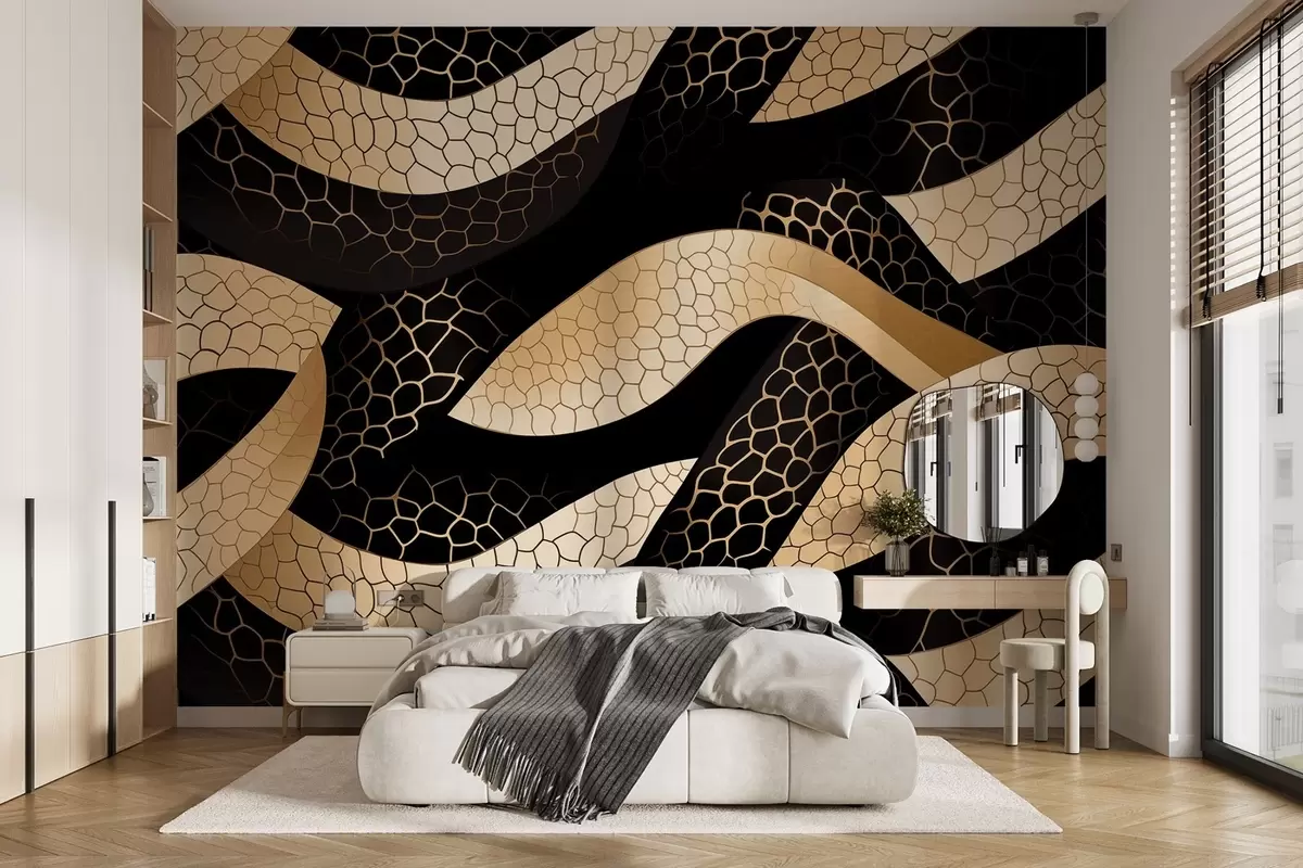 Valokuvatapetti Beige-musta kudottu kuvio Nr w08964