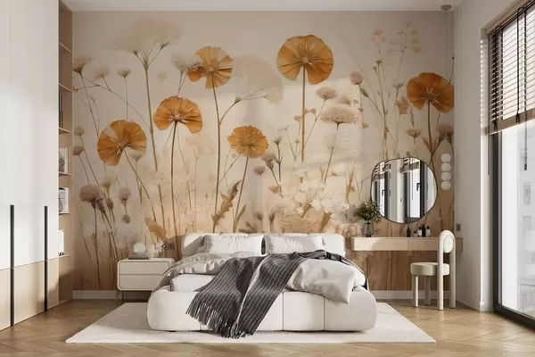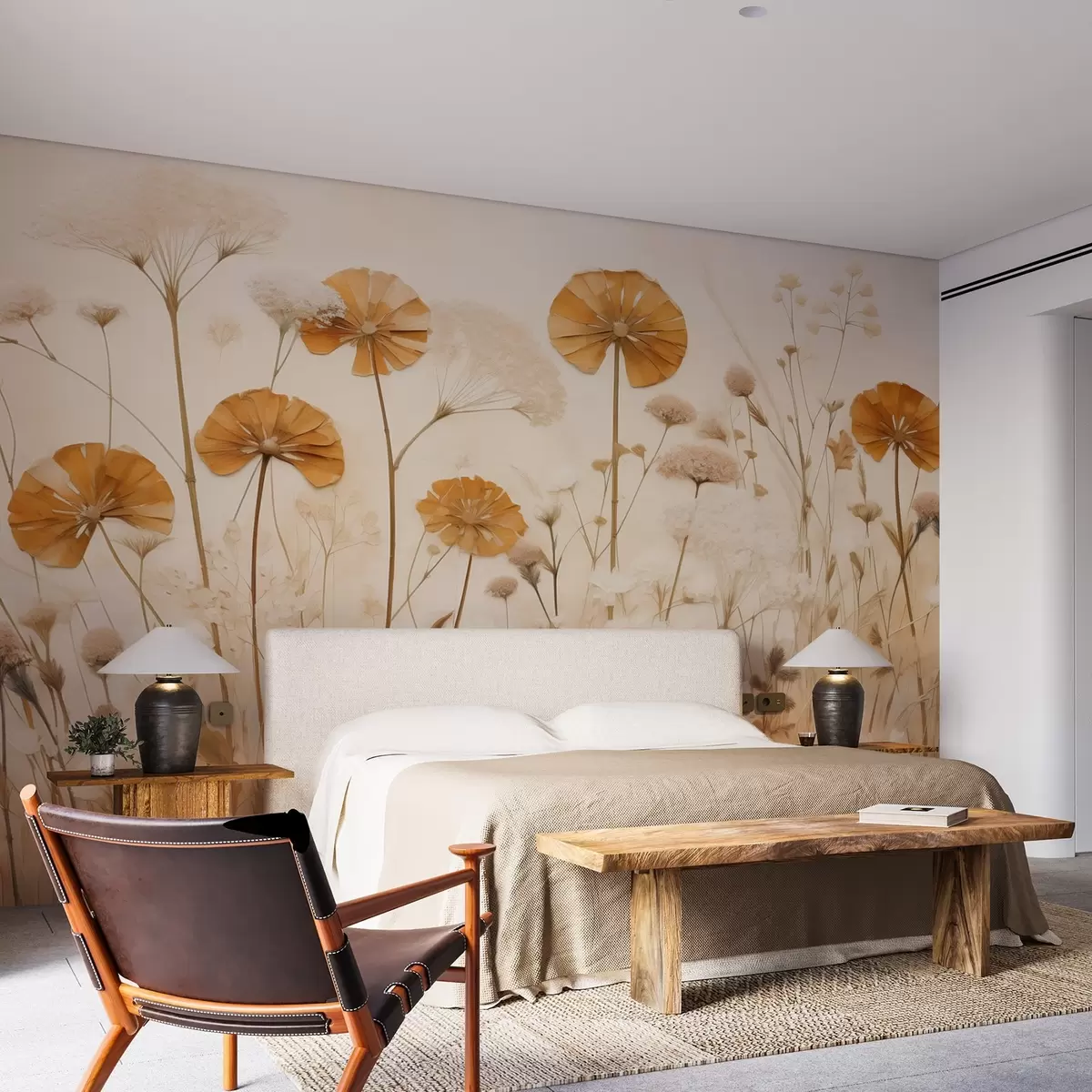 Valokuvatapetti Luonnonkukkia, joissa on keltaisia sävyjä lämpimissä sävyissä Nr w08994