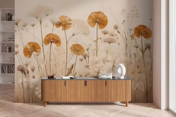 Valokuvatapetti Luonnonkukkia, joissa on keltaisia sävyjä lämpimissä sävyissä Nr w08994
