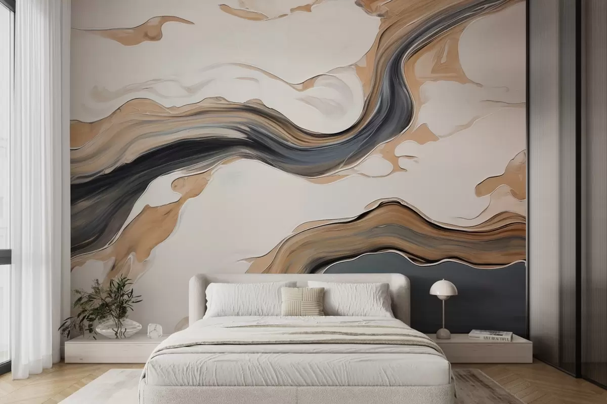 Valokuvatapetti Ruskeanharmaat raidat aaltojen muodossa Nr w09001