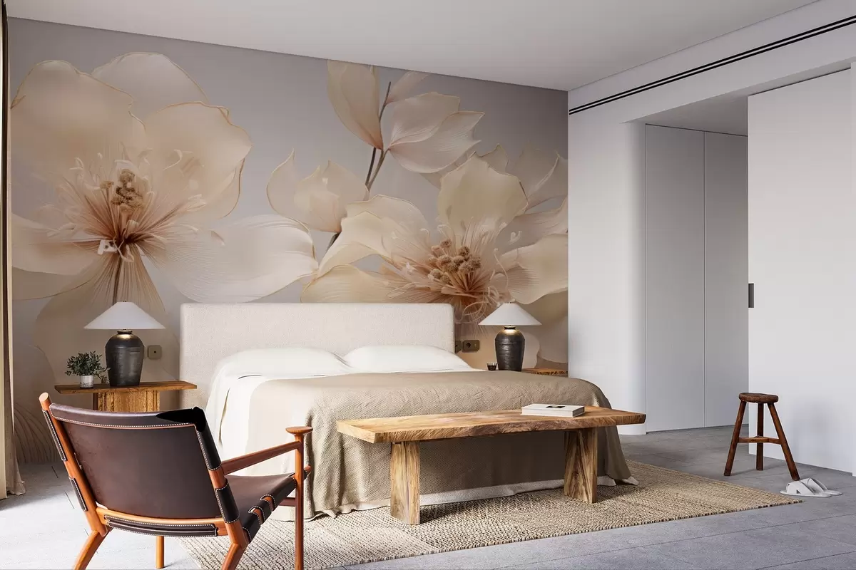 Valokuvatapetti Beige ilmakukat pehmeillä sävyillä Nr w09016