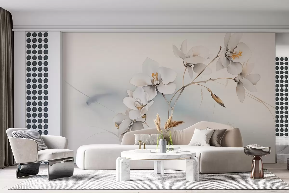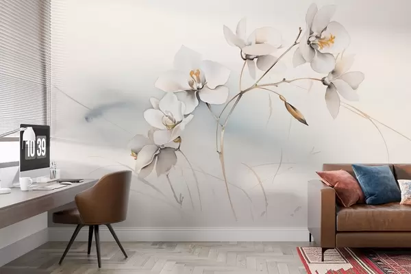 Valokuvatapetti Valkoinen orkidea haara vesivärityyliin Nr w09022