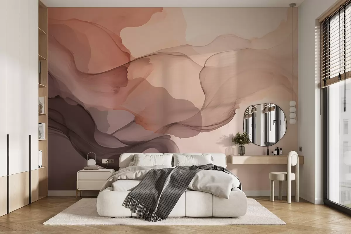 Valokuvatapetti Viininpunainen-violetti savu valkoisella pohjalla Nr w09026v2