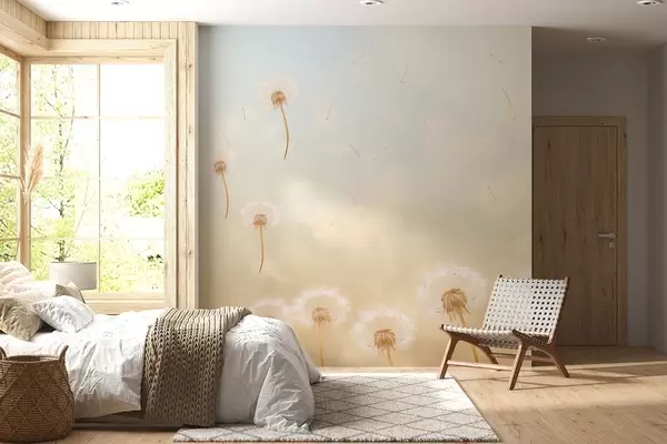 Valokuvatapetti Ilmava beige voikukkia puhaltaa tuulessa taivasta vasten - Nr w09028