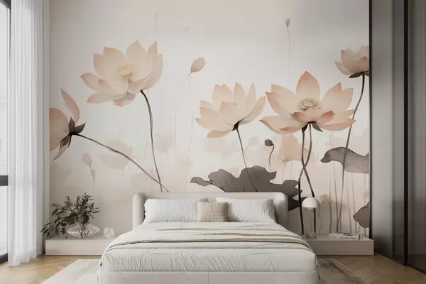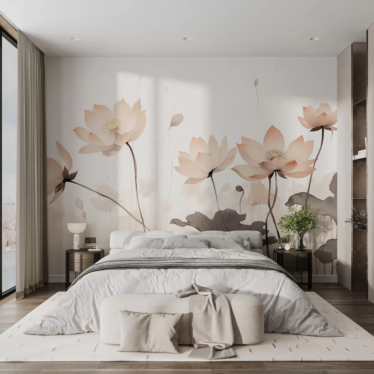 Valokuvatapetti Vesililjat herkkä vaaleat sävyt vesivärityylillä Nr w09035