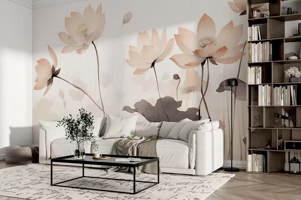 Valokuvatapetti Vesililjat herkkä vaaleat sävyt vesivärityylillä Nr w09035