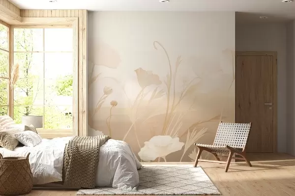 Valokuvatapetti Valkoiset unikot beigenharmaissa sävyissä w09041