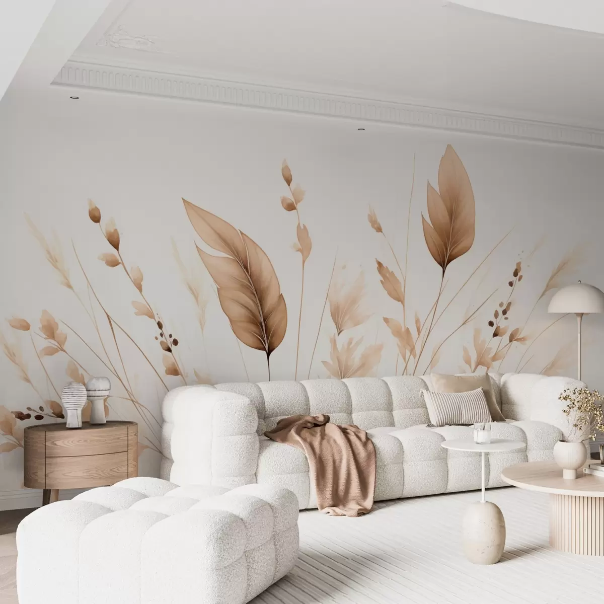 Valokuvatapetti Tanssi ilmava kuivien ruohojen tanssi tuulessa rauhallisissa beigeissä väreissä Nr w09045