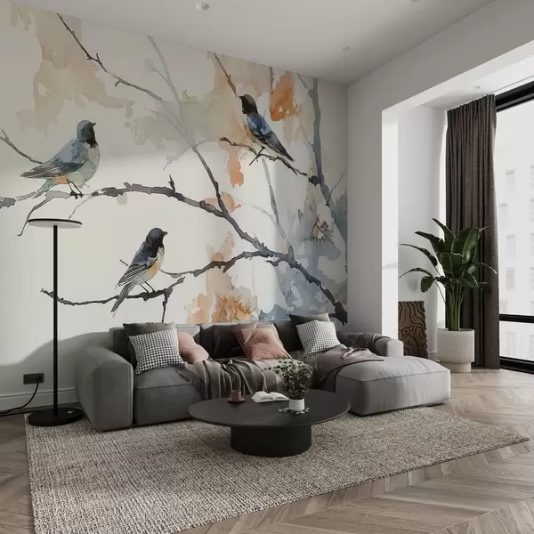 Valokuvatapetti Lintuja puun oksilla akvarellityyliin Nr w09064