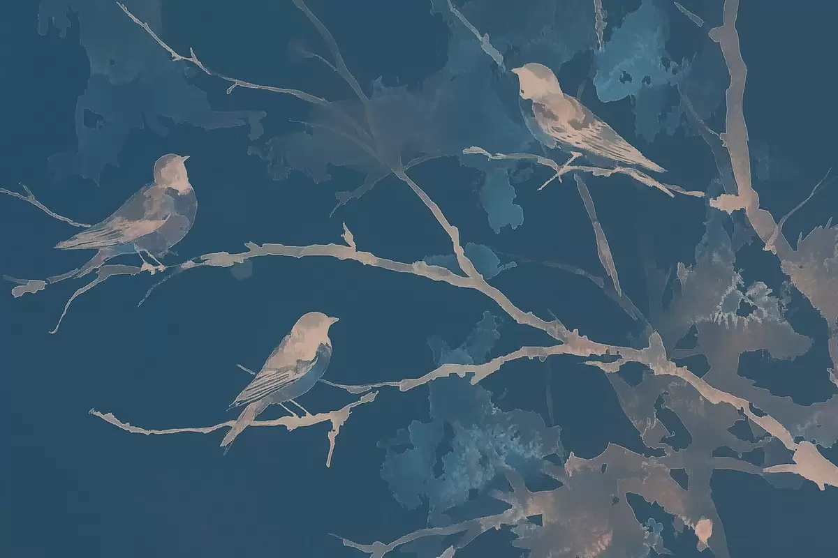 Valokuvatapetti Lintuja puun oksilla akvarellityyliin Nr w09064v1