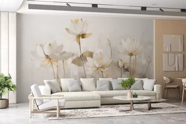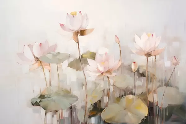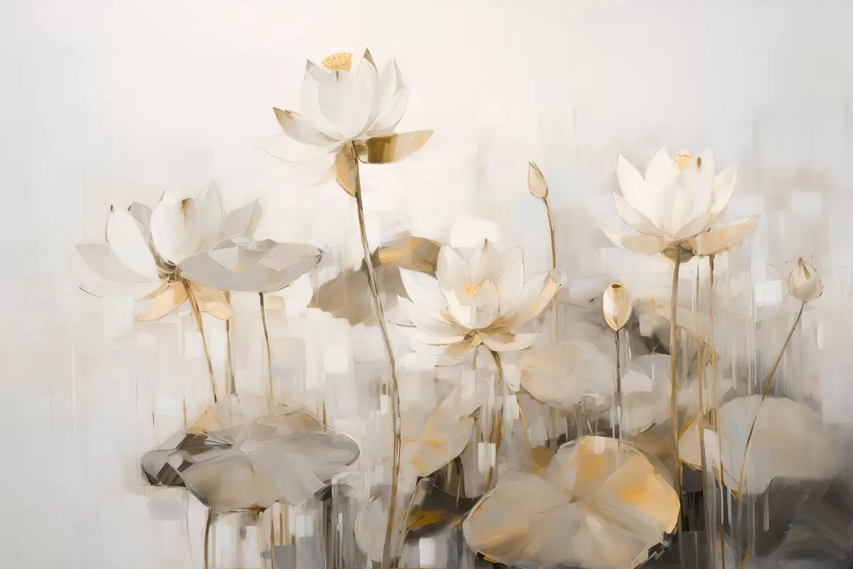 Valokuvatapetti Herkkä lootuksen kukkia maalattu akryyliä Nr w09067v2