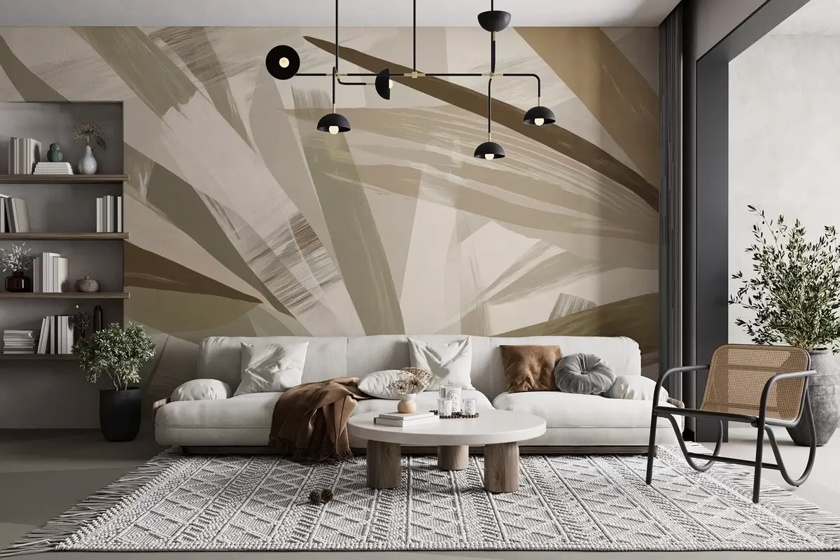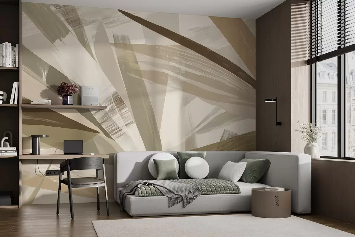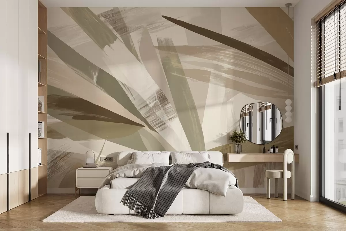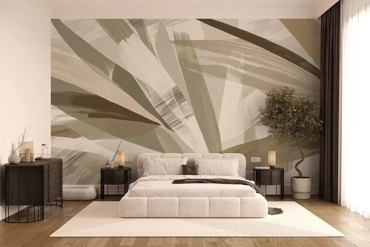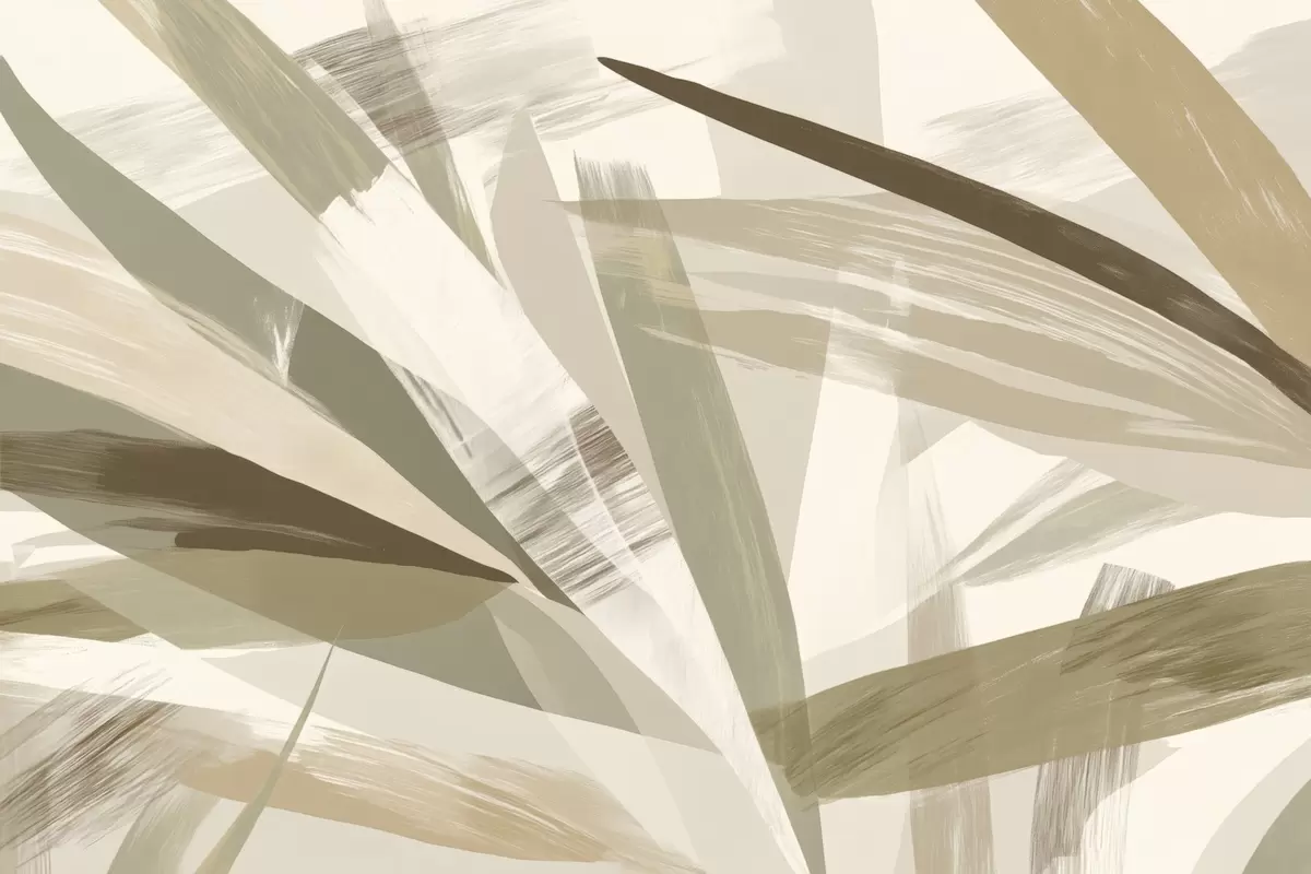 Valokuvatapetti Abstrakteja lehtiä vihreän ja beigen sävyissä Nr w09091