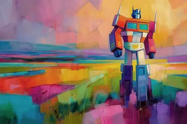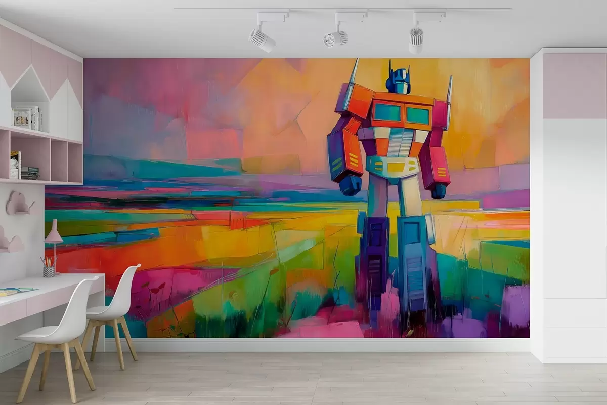 Valokuvatapetti Robotti vastaan kirkas abstrakti maisema öljymaalaus tyyliin Nr w09096