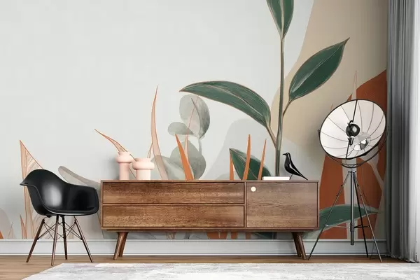 Valokuvatapetti Beigen ja vihreän sävyiset lehdet Nr w09101