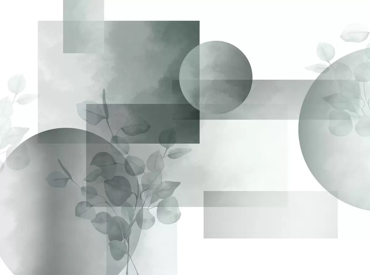 Valokuvatapetti Abstrakti moderni minimalistinen geometrinen muotoilu ympyröillä ja suorakulmioilla, eukalyptuslehdet, vesiväriefekti Nr w09110