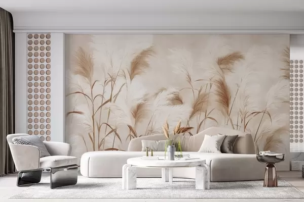 Valokuvatapetti Elegantti pampasruoho kukkii pehmeän beigen ja maitomaisen sävyissä Nr w09150v1