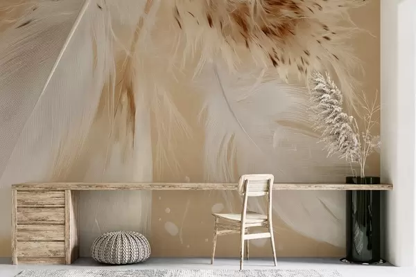 Valokuvatapetti Kevyet höyhenet lämpimän beigen ja valkoisen sävyissä Nr w09153