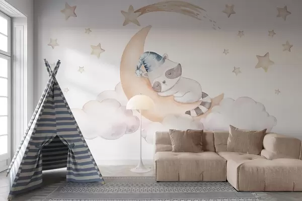 Valokuvatapetti Pesukarhu kuussa Nr w09169v1