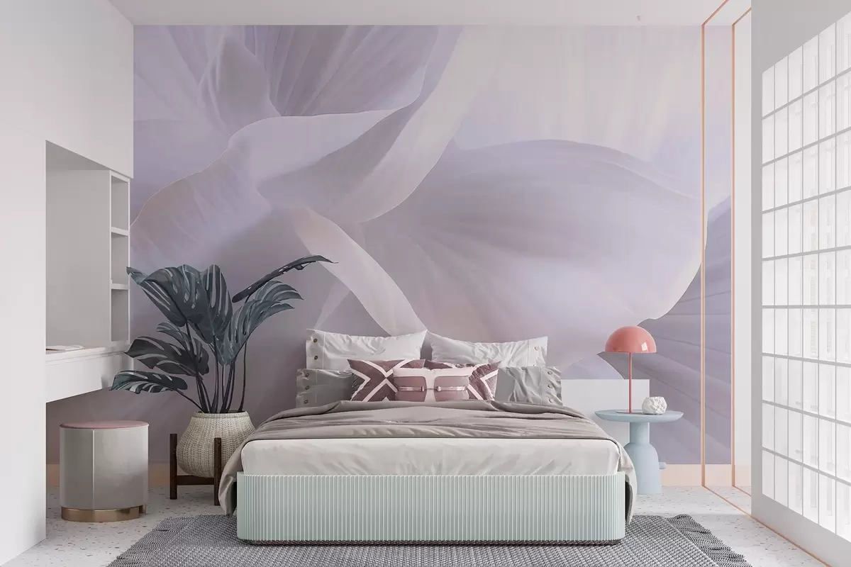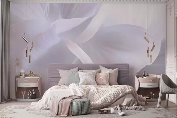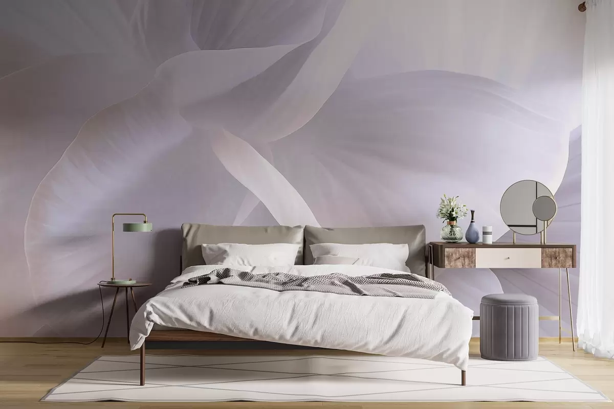 Valokuvatapetti Abstrakti kuvioitu kukka, jossa on herkät terälehdet, pehmeä valaistus, elegantti sommittelu, minimalistinen estetiikka Nr w09211