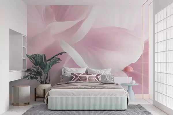 Valokuvatapetti Abstrakti kuvioitu kukka, jossa on herkät terälehdet, pehmeä valaistus, elegantti sommittelu, minimalistinen estetiikka Nr w09211v1