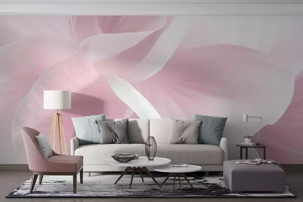 Valokuvatapetti Abstrakti kuvioitu kukka, jossa on herkät terälehdet, pehmeä valaistus, elegantti sommittelu, minimalistinen estetiikka Nr w09211v1