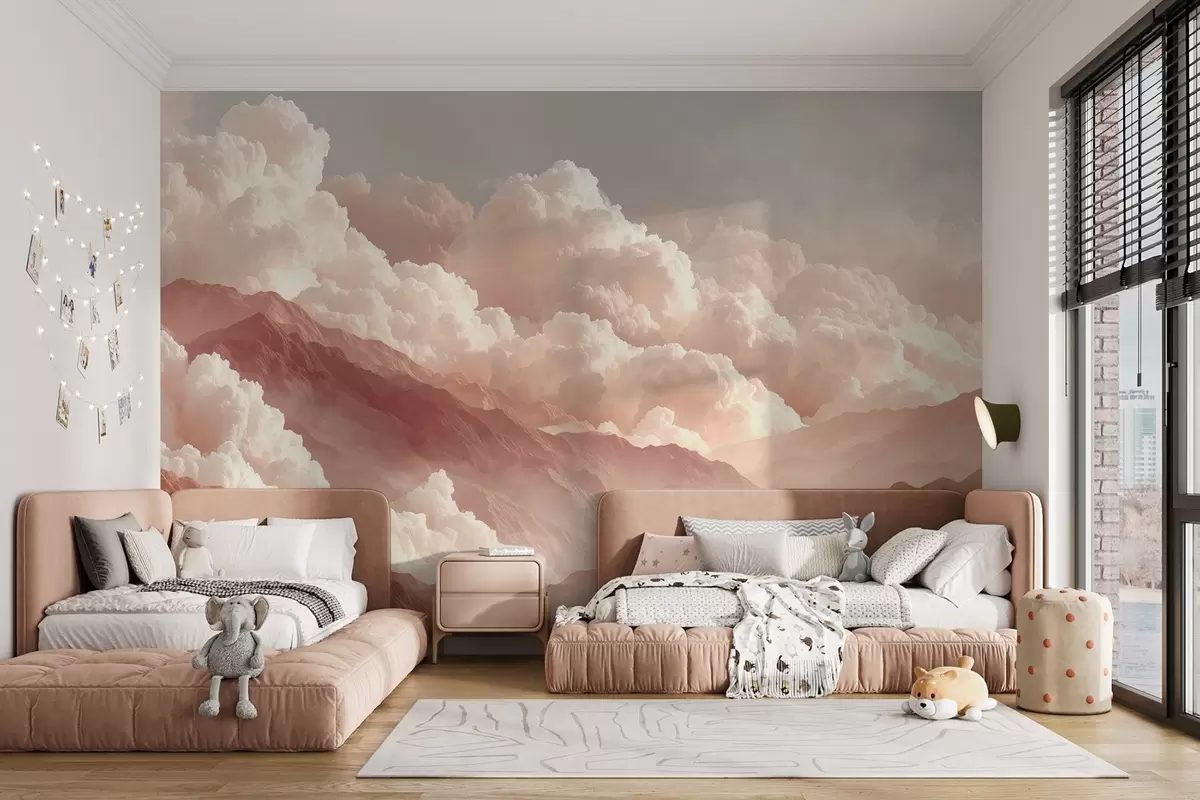Valokuvatapetti Lämmin auringonnousu vuorten yllä pörröisten pilvien kanssa Nr w09226