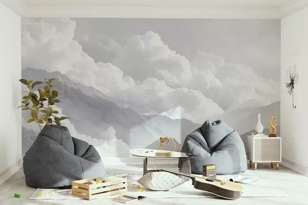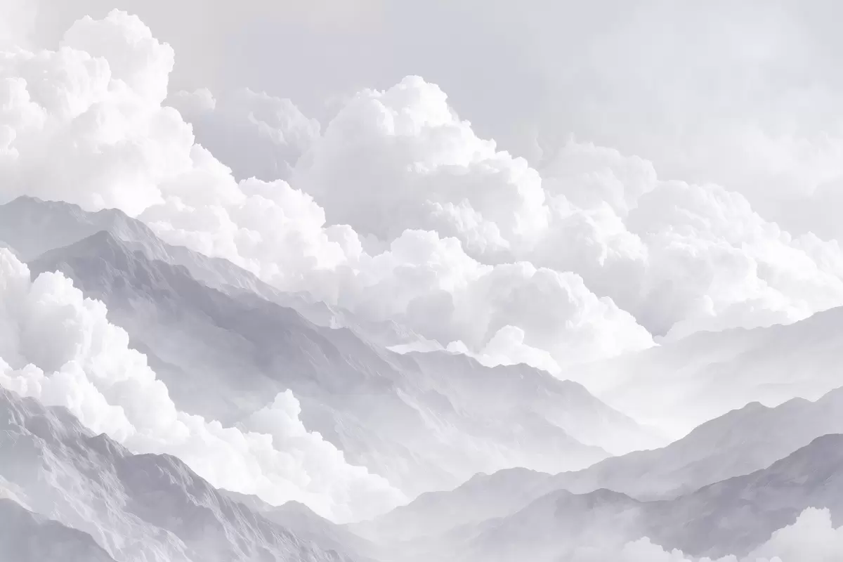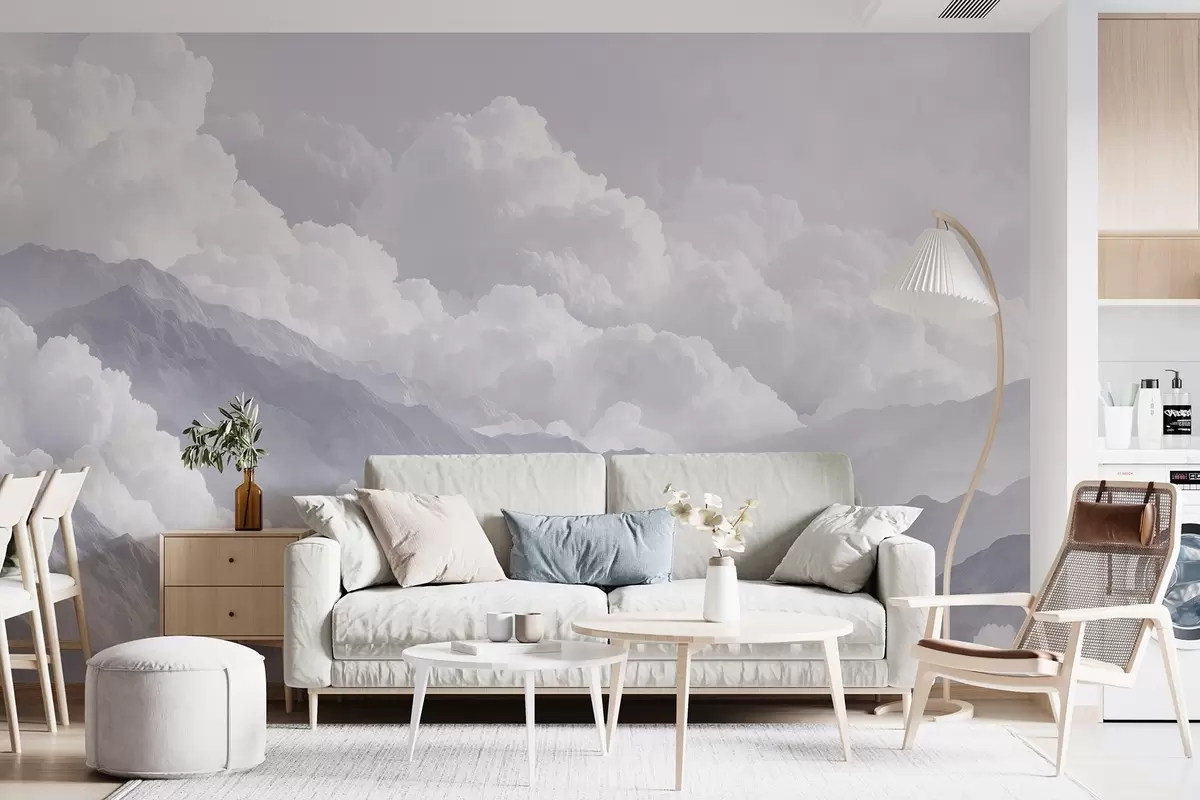 Valokuvatapetti Pehmeät pilvet vuorten yllä sinisissä sävyissä Nr w09226v2