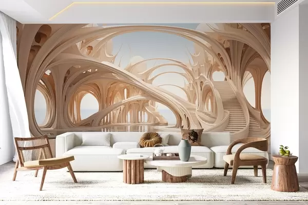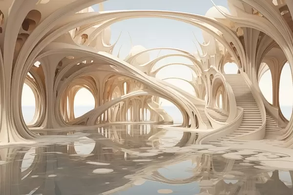 Valokuvatapetti Fantasia-arkkitehtuuri kaaria veden yläpuolella Nr w09241