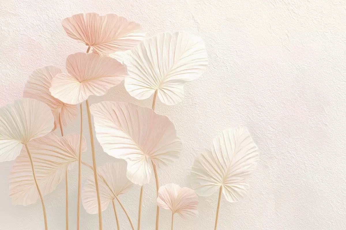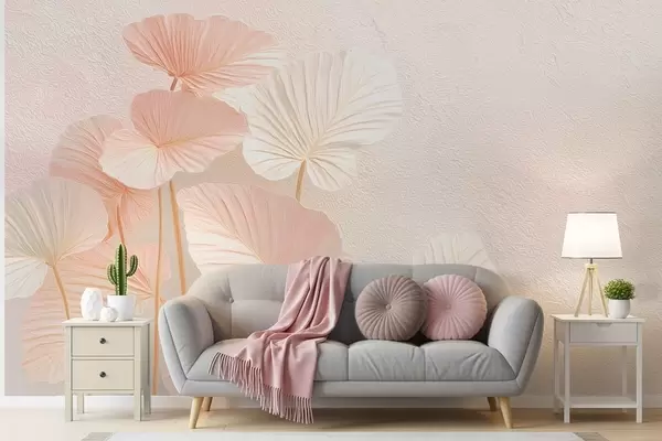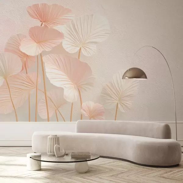 Valokuvatapetti Tyylikäs suuri trooppinen lehdet herkkä vaaleanpunainen väri Nr w09252v1