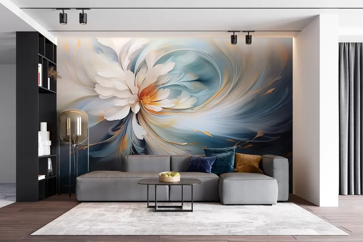 Valokuvatapetti Abstrakti kukka sinisen ja oranssin sävyissä Nr w09270v1