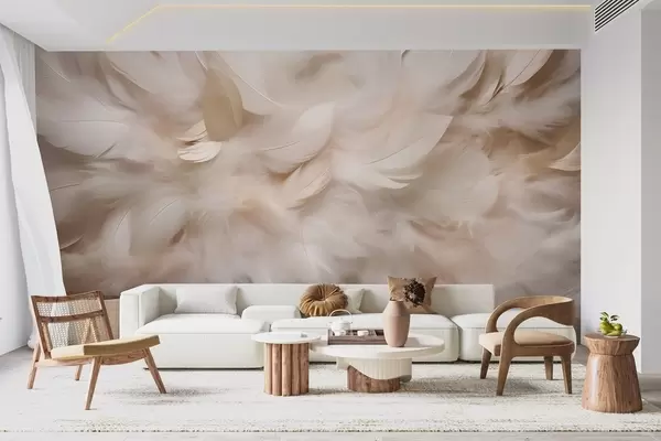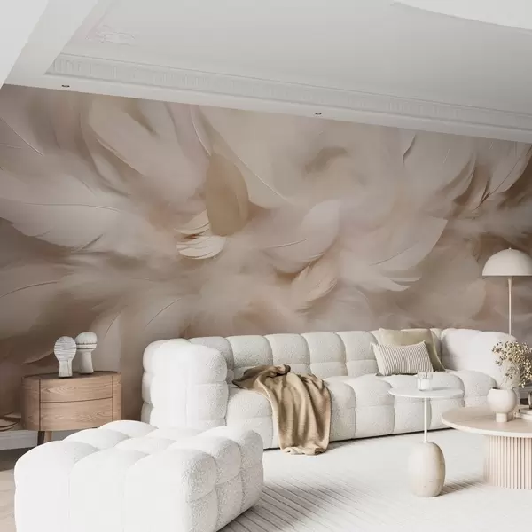 Valokuvatapetti Pörröiset höyhenet ja untuvat kermanvärisissä sävyissä Nr w09274