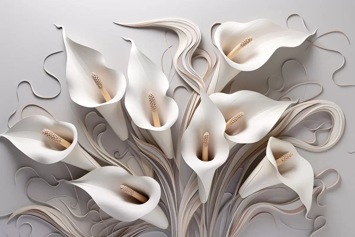 Valokuvatapetti Volumetriset kalla liljat kermanvärisissä sävyissä 3D-efektillä Nr w09281