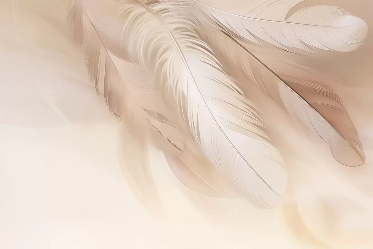 Valokuvatapetti Painottomat höyhenet lämpimien sävyjen pehmeässä sumussa Nr w09286