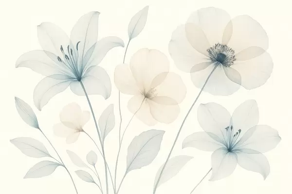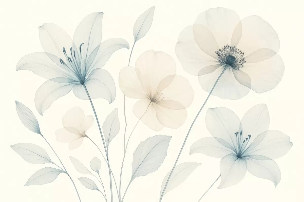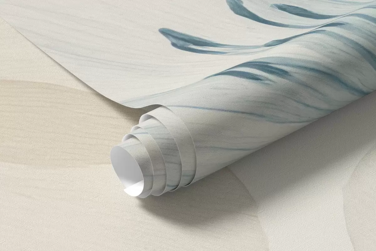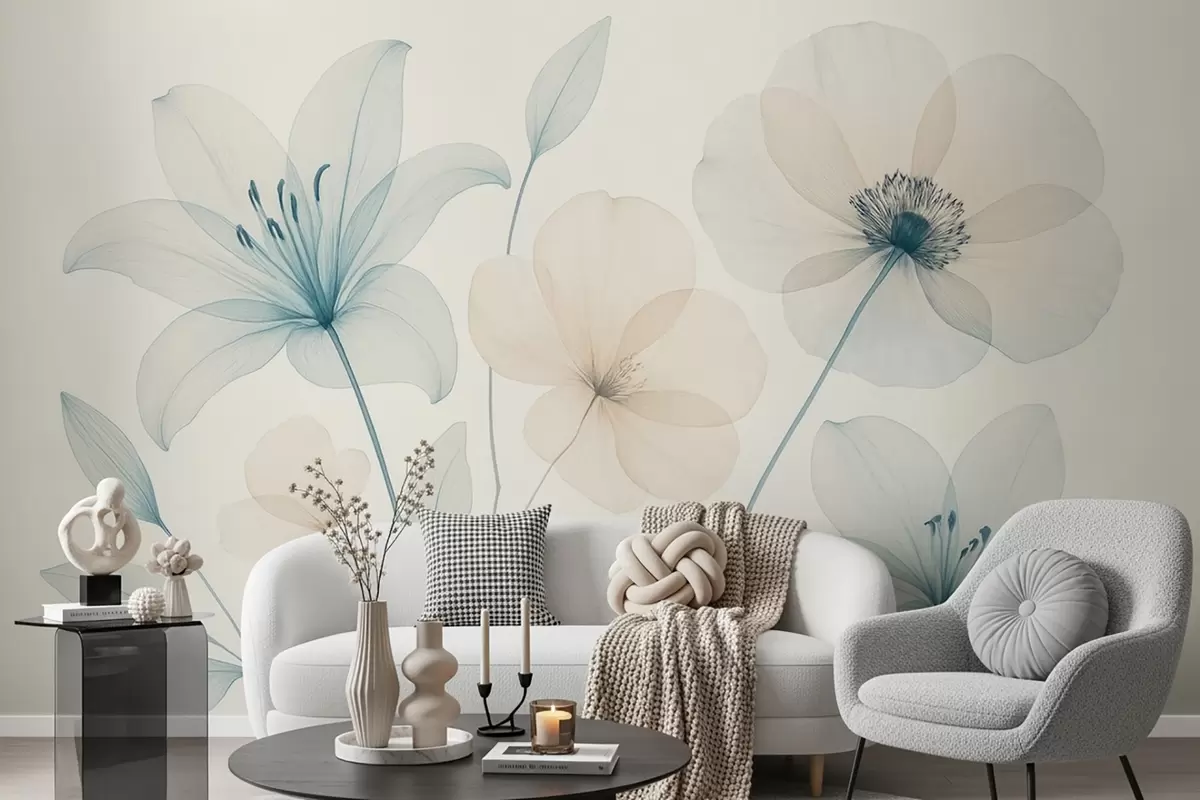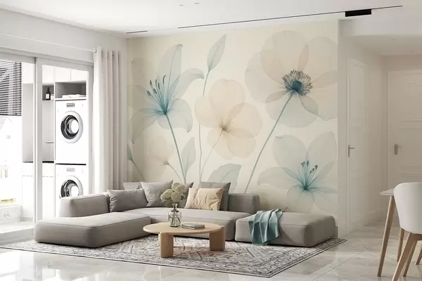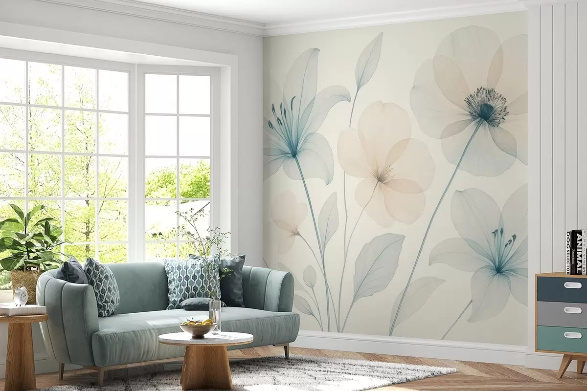 Valokuvatapetti Herkät kukat pastellinsinisellä ja kermanvärisellä vesivärityylillä Nr w09287
