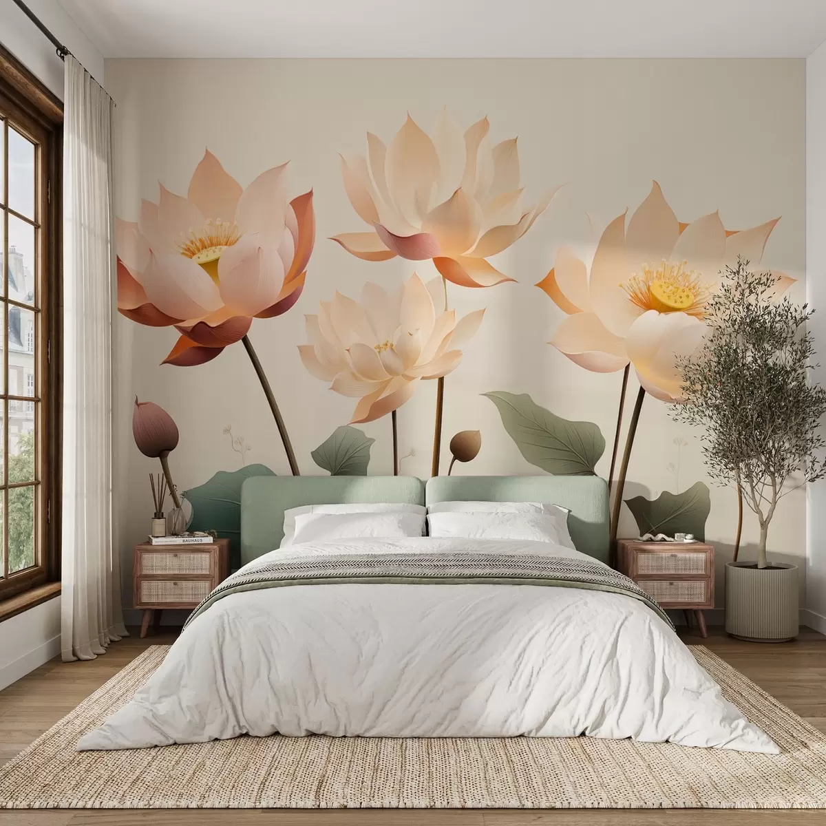 Valokuvatapetti Tyylikkäät lootuskukat lempeässä pastellivärimaailmassa w09306