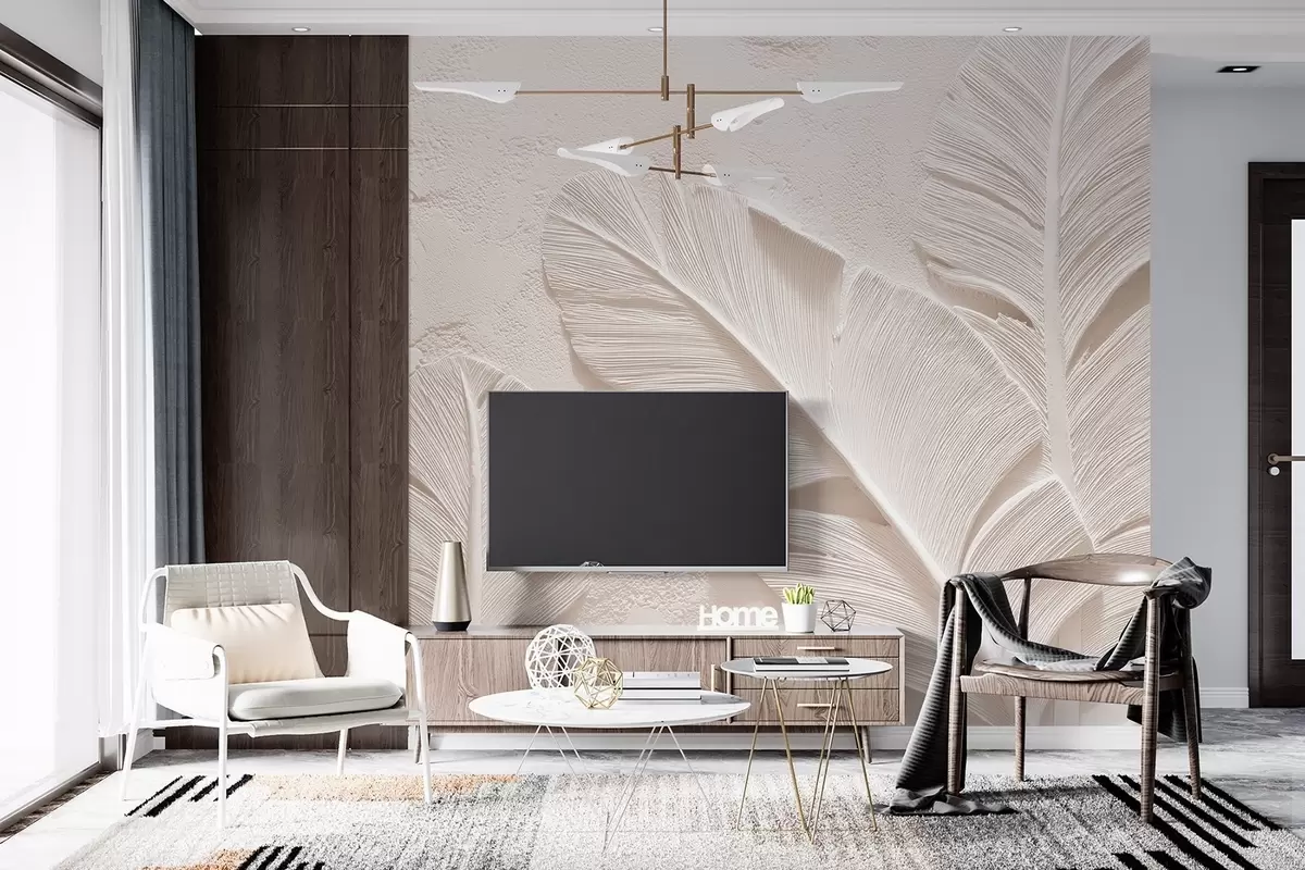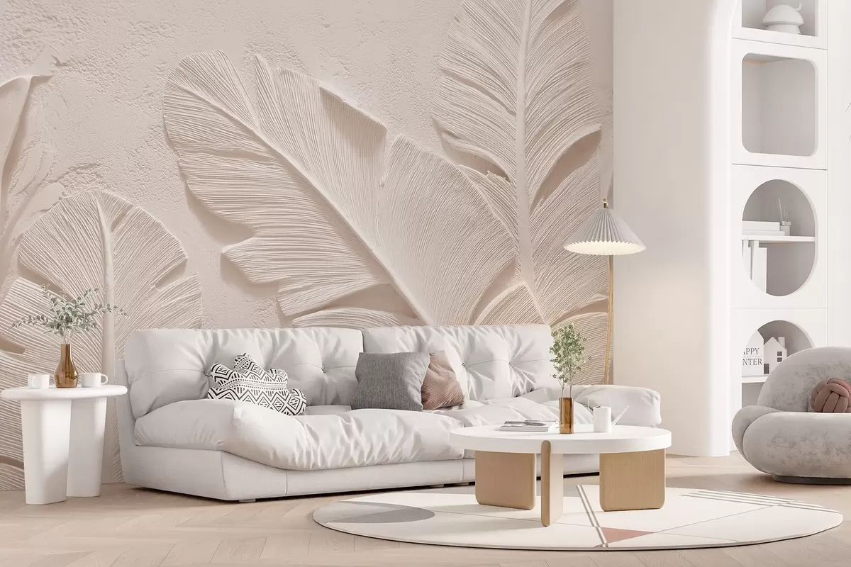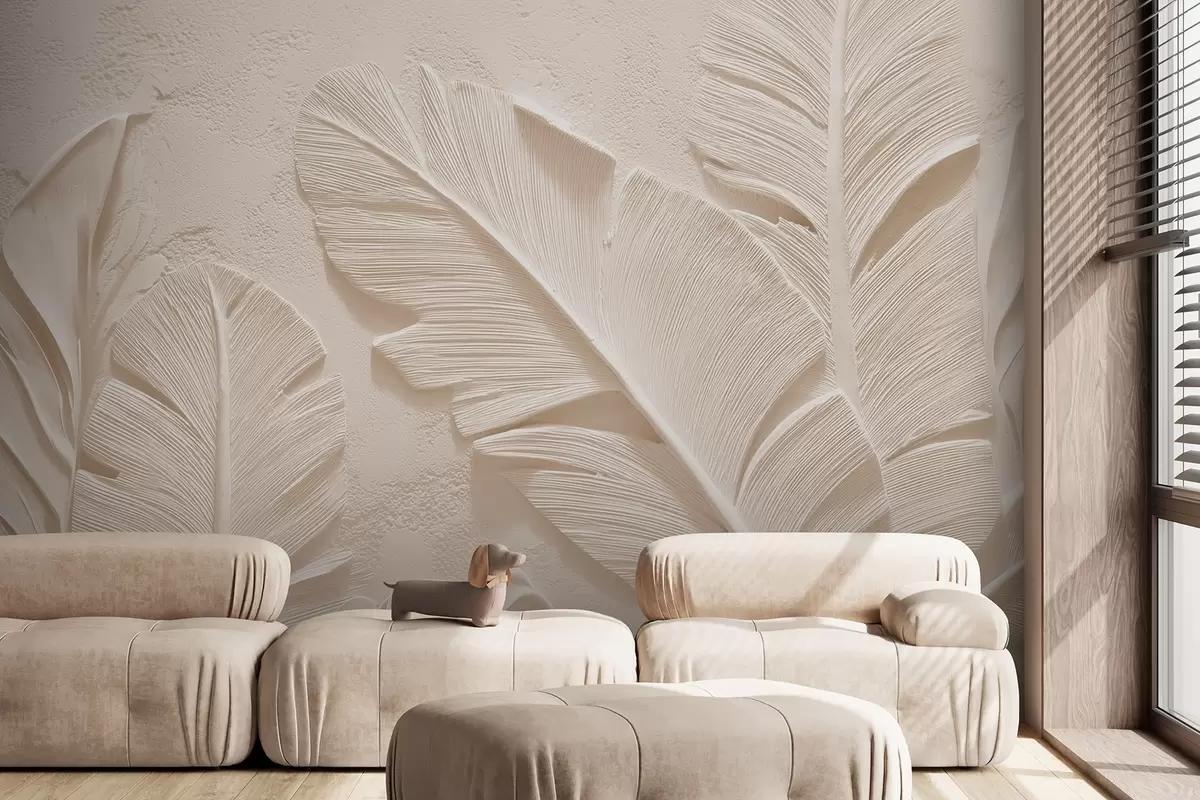 Valokuvatapetti Reliefilehdet lämpimissä beige-hiekan sävyissä Nr w09307v1