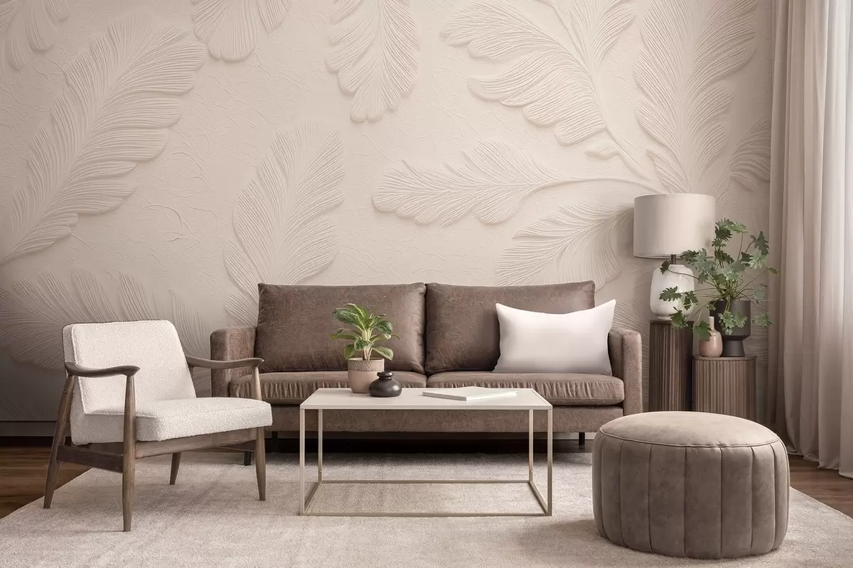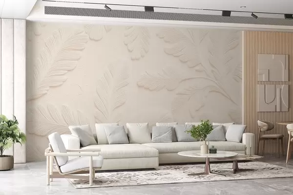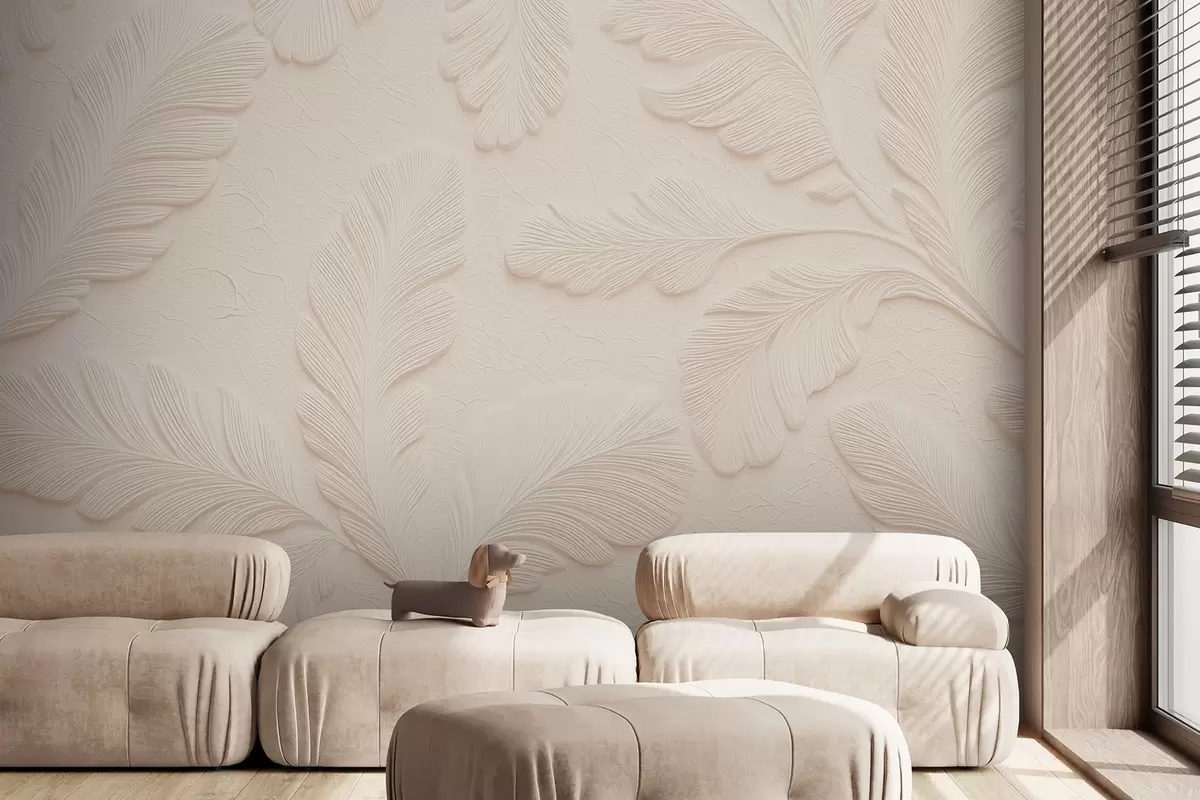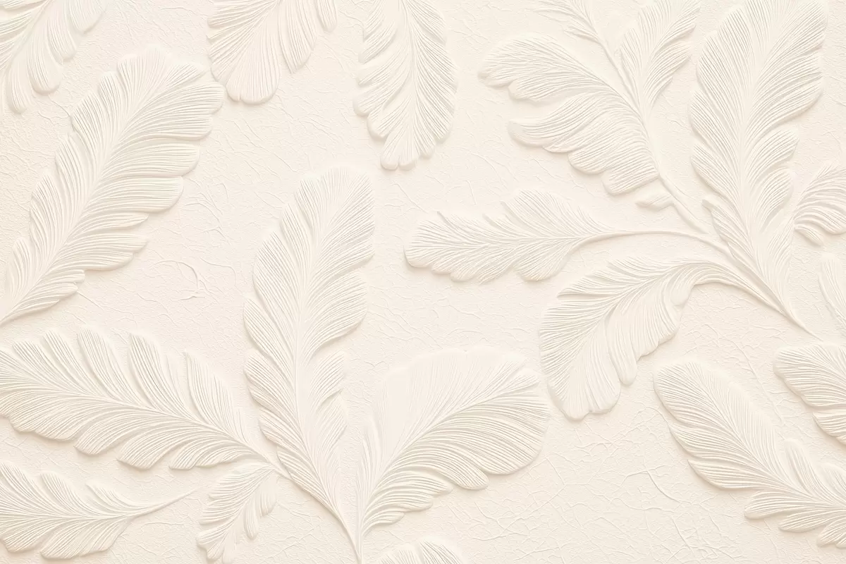 Valokuvatapetti Kohokuvioidut lehdet vaalealla pohjalla, jossa on halkeileva vaikutus Nr w09309