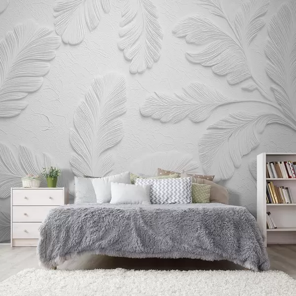 Valokuvatapetti Reliefilehdet harmaana, jossa on halkeillut tekstuuriefekti Nr w09309v1