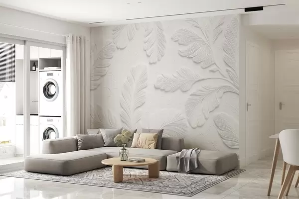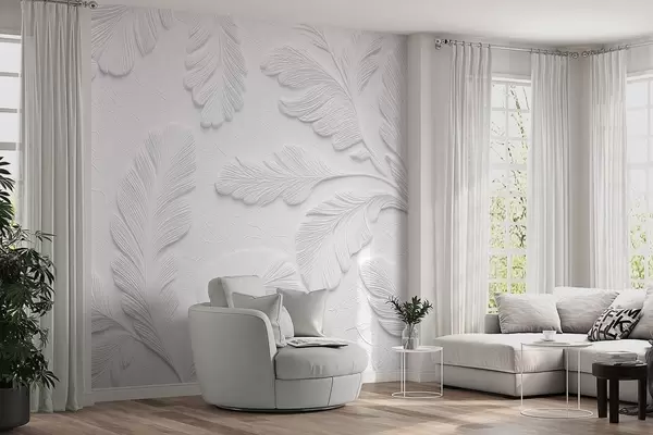 Valokuvatapetti Reliefilehdet harmaana, jossa on halkeillut tekstuuriefekti Nr w09309v1