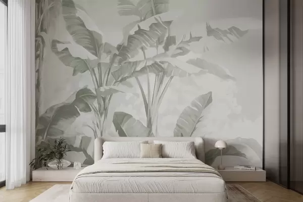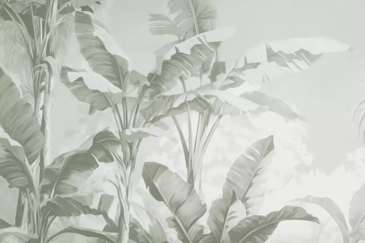 Valokuvatapetti Trooppiset banaaninlehdet pehmeissä vihreissä sävyissä Nr w09311v1